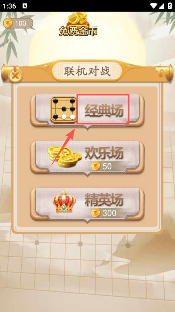 3、选择“经典场”模式,您可以在这里与其他玩家进行五子棋对弈。