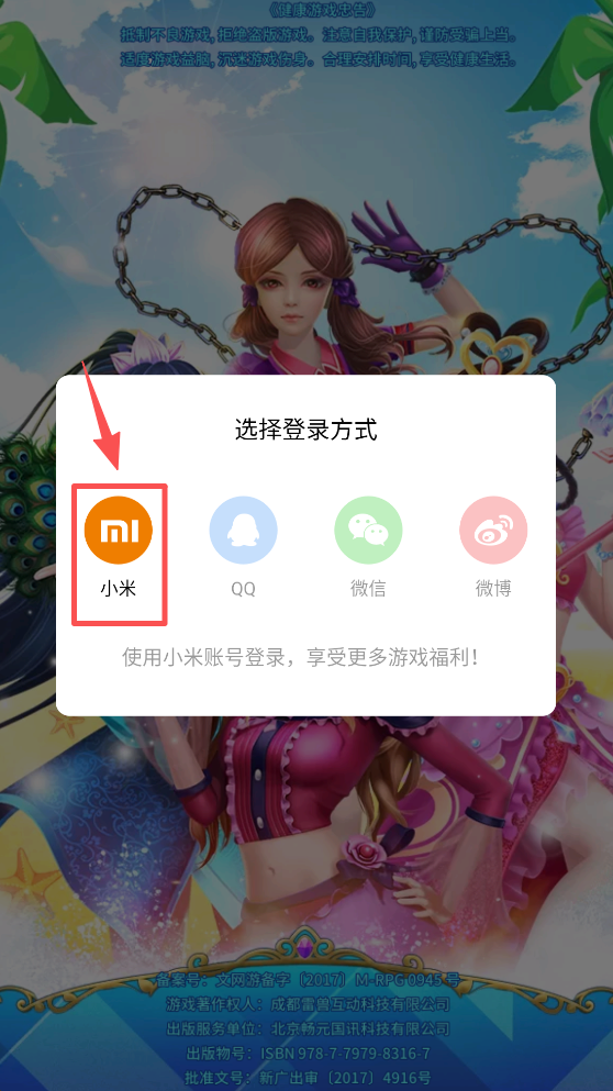 1、在游戏登录界面,选择“小米”或其他方式登录以进入游戏。