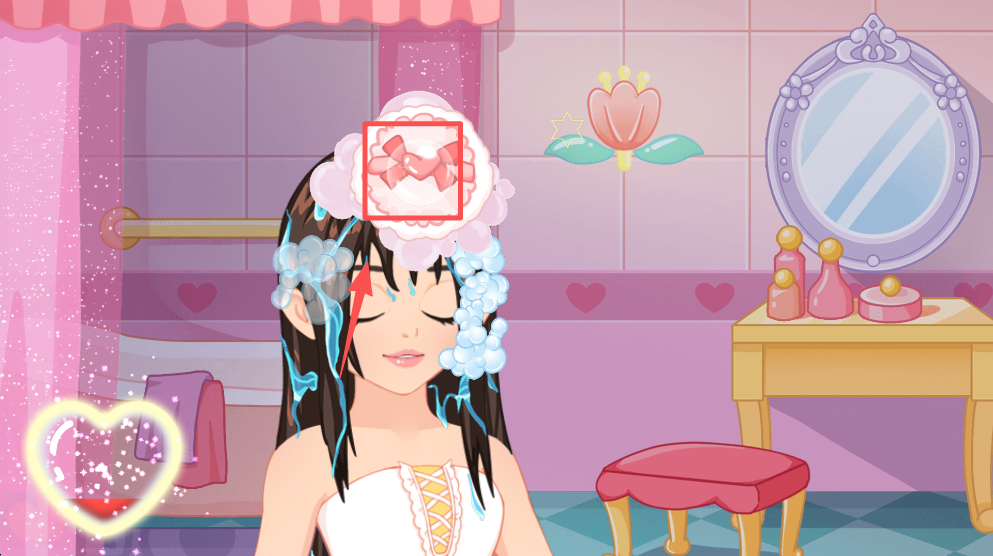 3、使用花洒为公主进行洗发,展现你的劳动成果。