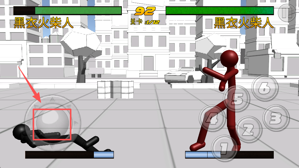 1、玩家通过虚拟控制器指挥火柴人移动与攻击,操作响应迅捷,界面布局清晰,便于快速掌握基础动作。