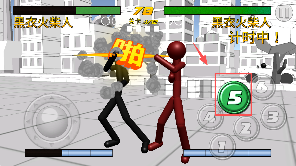 3、在战斗中,使用虚拟摇杆控制角色移动,点击屏幕上的数字按钮进行攻击。