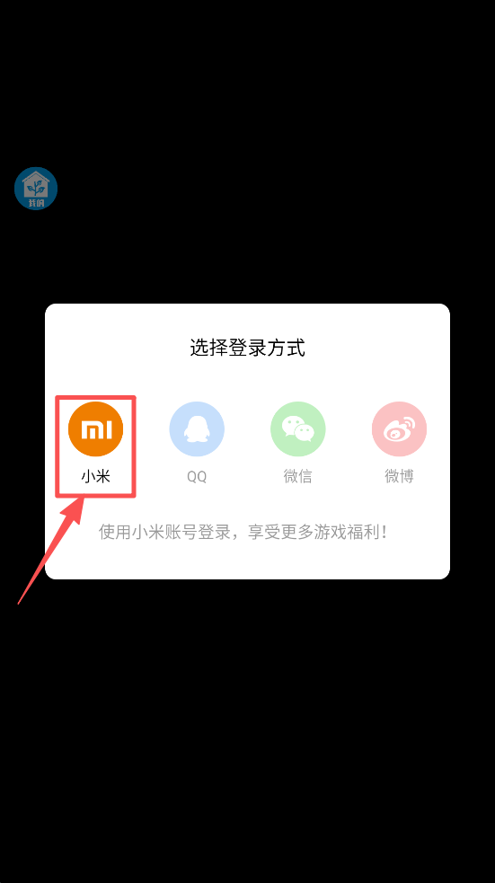 1、选择登录方式,如小米账号,享受更多游戏福利,点击图标进行登录。
