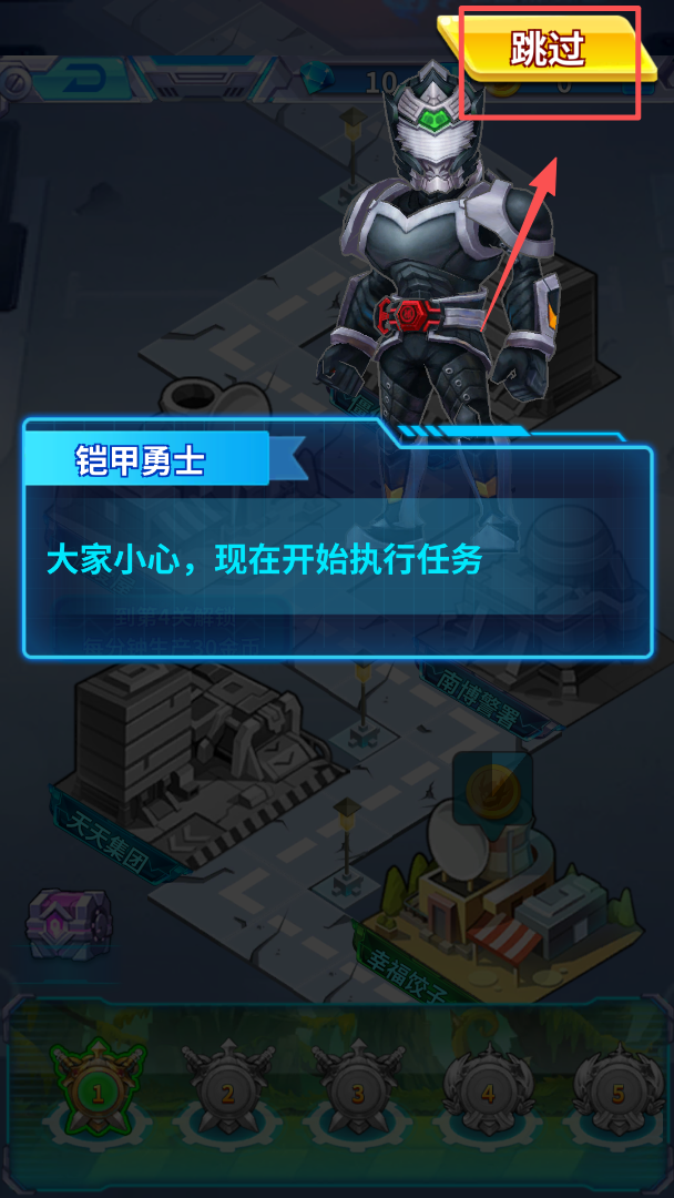 4、在任务界面点击“跳过”按钮,跳过剧情,直接开始执行任务。
