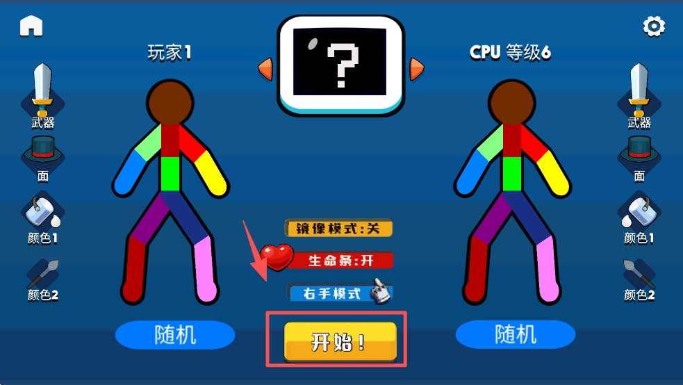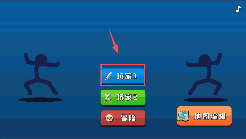 1、首先,点击“玩家1”按钮选择角色,开始游戏并准备进入战斗场景。