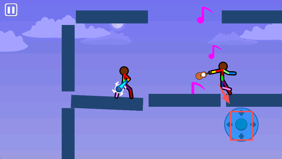 3、然后,使用屏幕上的虚拟摇杆控制角色移动,避开障碍物,同时攻击对手。