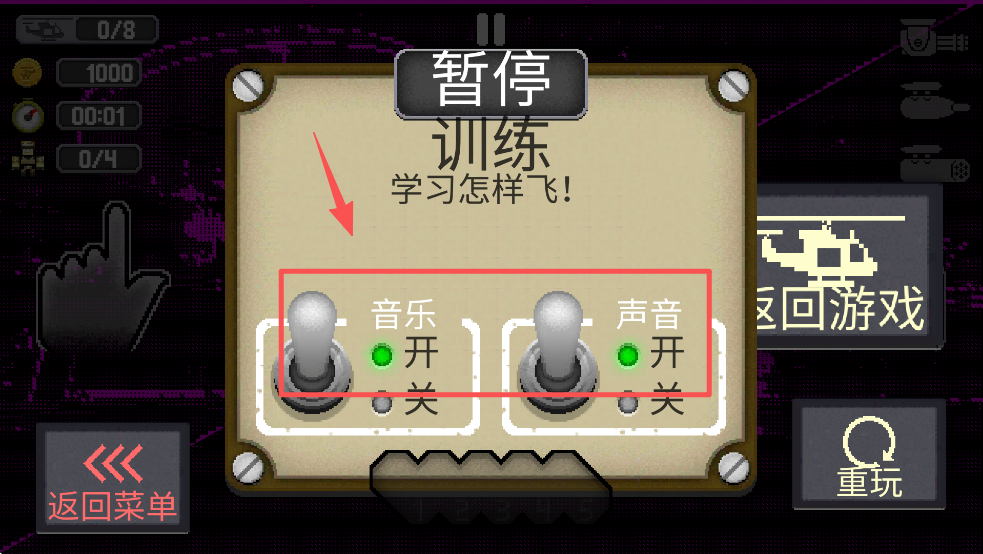 4、最后,在训练模式中调整音乐和声音设置,以便更好地体验游戏。
