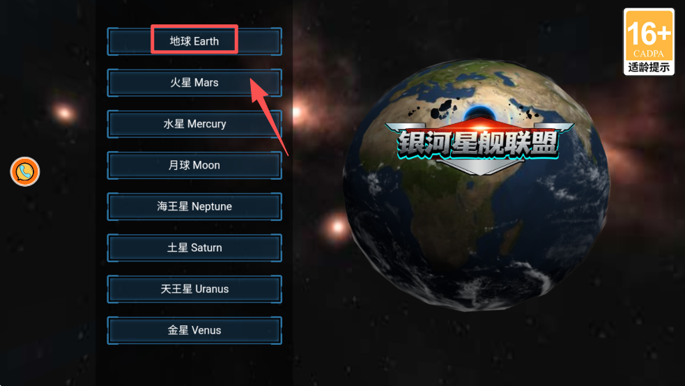 1、首先,从列表中选择“地球”或其他星球开始游戏。