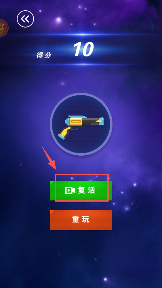 3、游戏结束后,选择“复活”继续游戏或“重玩”重新开始挑战。
