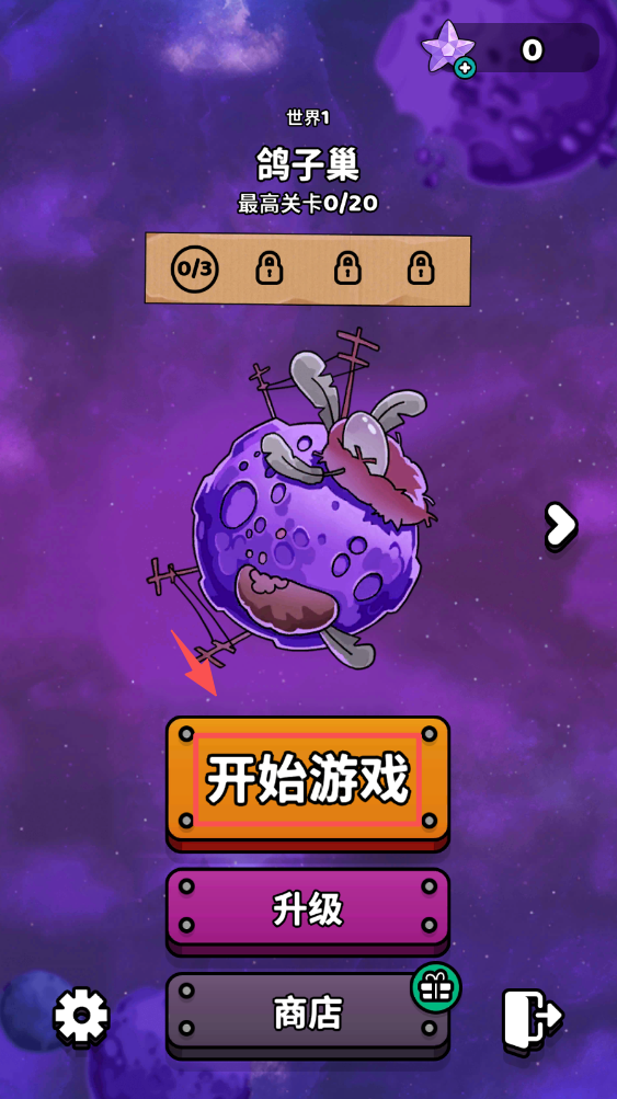 1、在主界面选择“鸽子巢”关卡,点击“开始游戏”按钮进入。