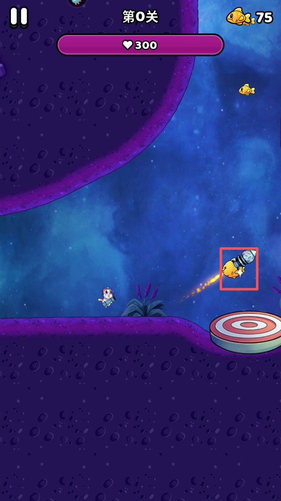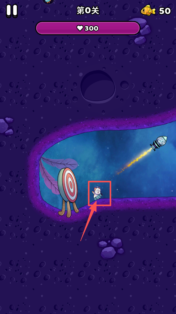 2、在游戏界面,触摸屏幕拖动火箭猫,调整角度并释放以发射。
