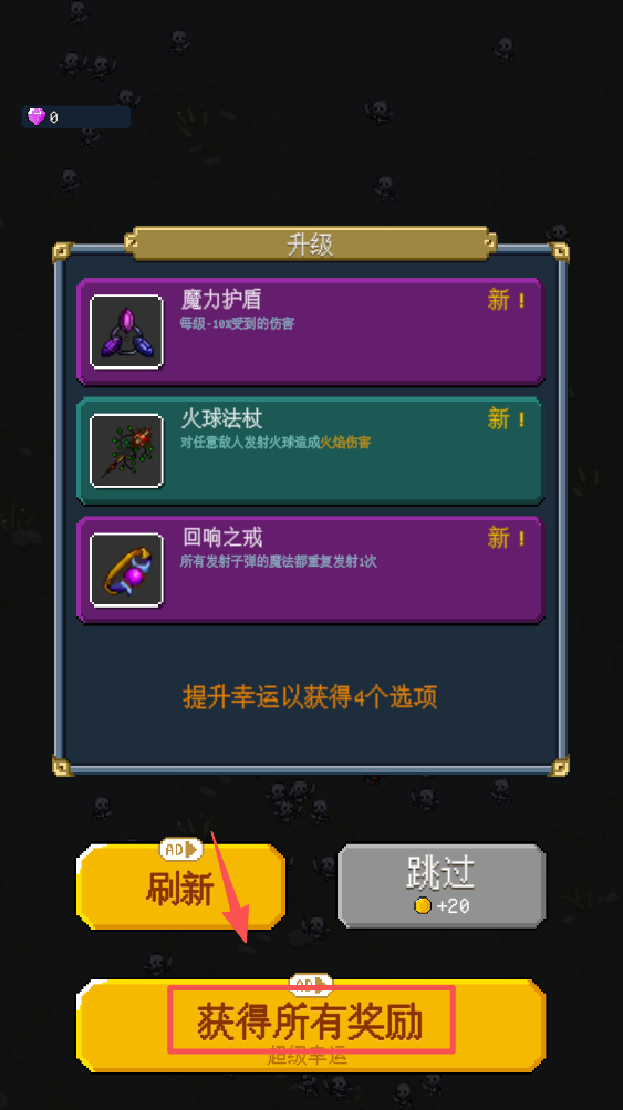 4、在升级界面,点击“获得所有奖励”来提升角色能力。