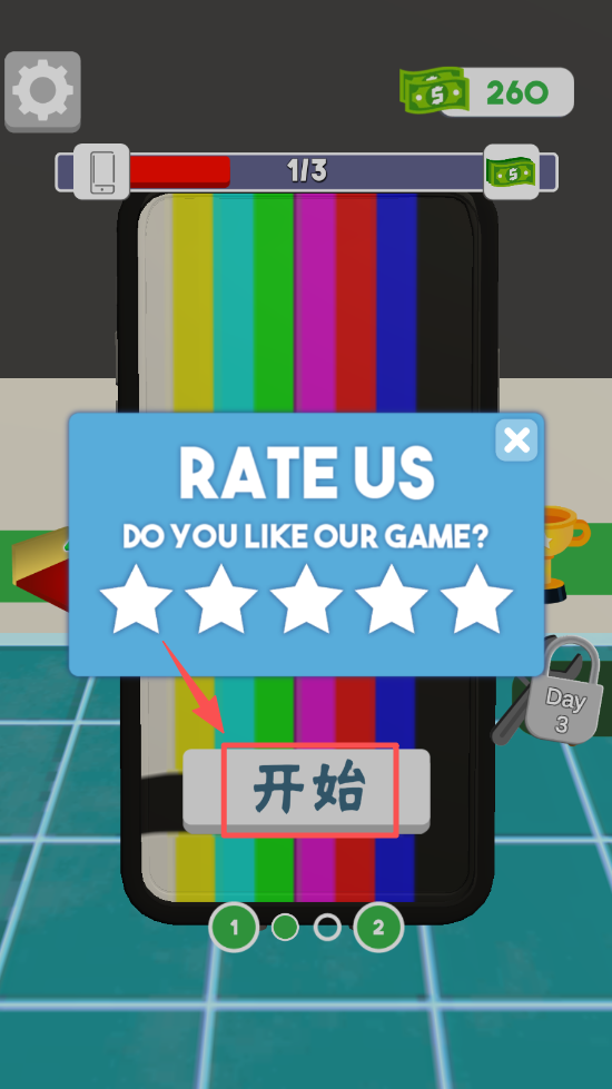 3、点击“开始”按钮,对弹出的评分请求进行响应,继续游戏进程。