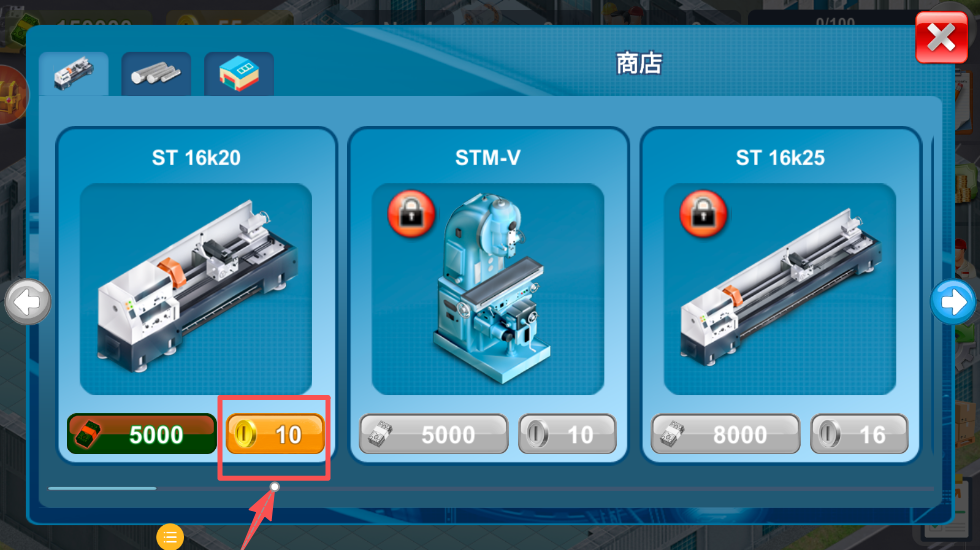 3、在商店界面,选择并购买所需的机器设备,支付相应费用。
