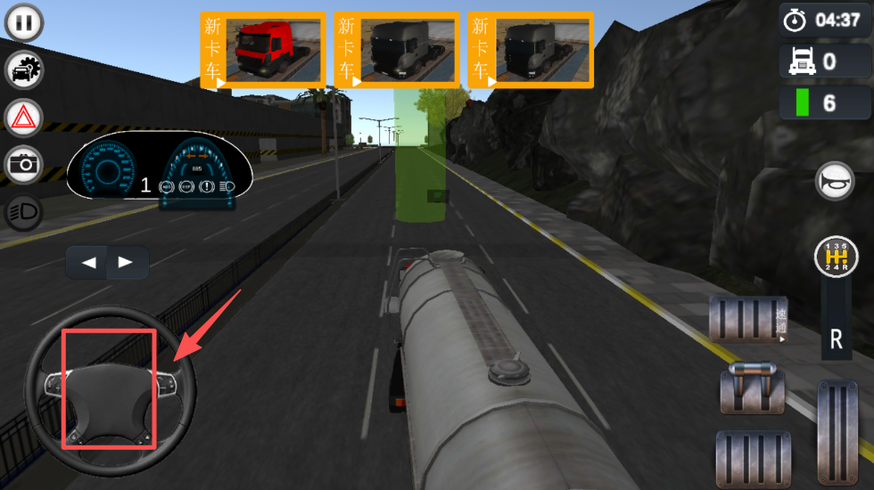 4、进入游戏驾驶界面,通过虚拟方向盘控制卡车,开始您的货物运输任务。