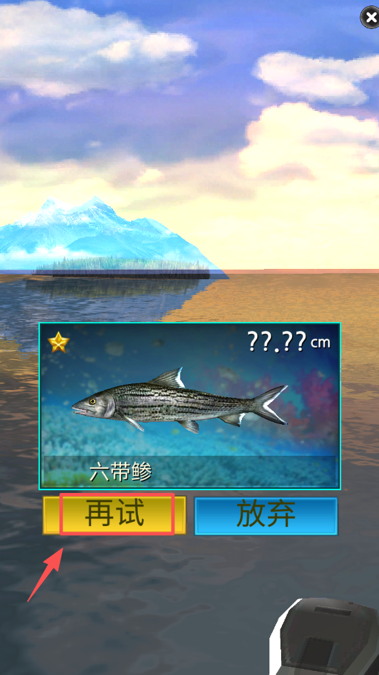 4、钓到鱼后,选择“再试”继续游戏或“放弃”结束当前钓鱼。