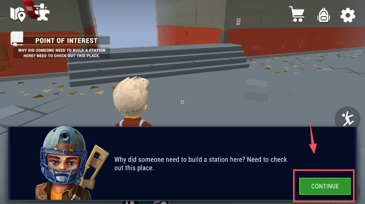 3、点击“CONTINUE”按钮继续游戏剧情。在对话结束后,点击继续以推进游戏。