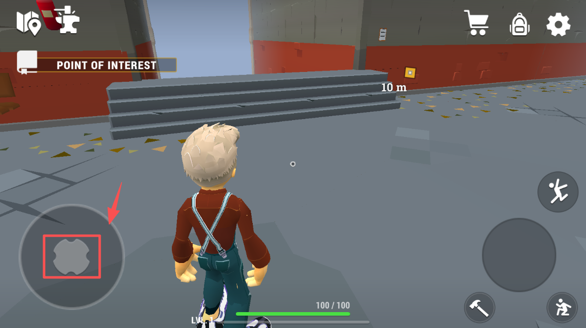 4、通过滑动屏幕左下角的摇杆来操纵角色在游戏内的移动。
