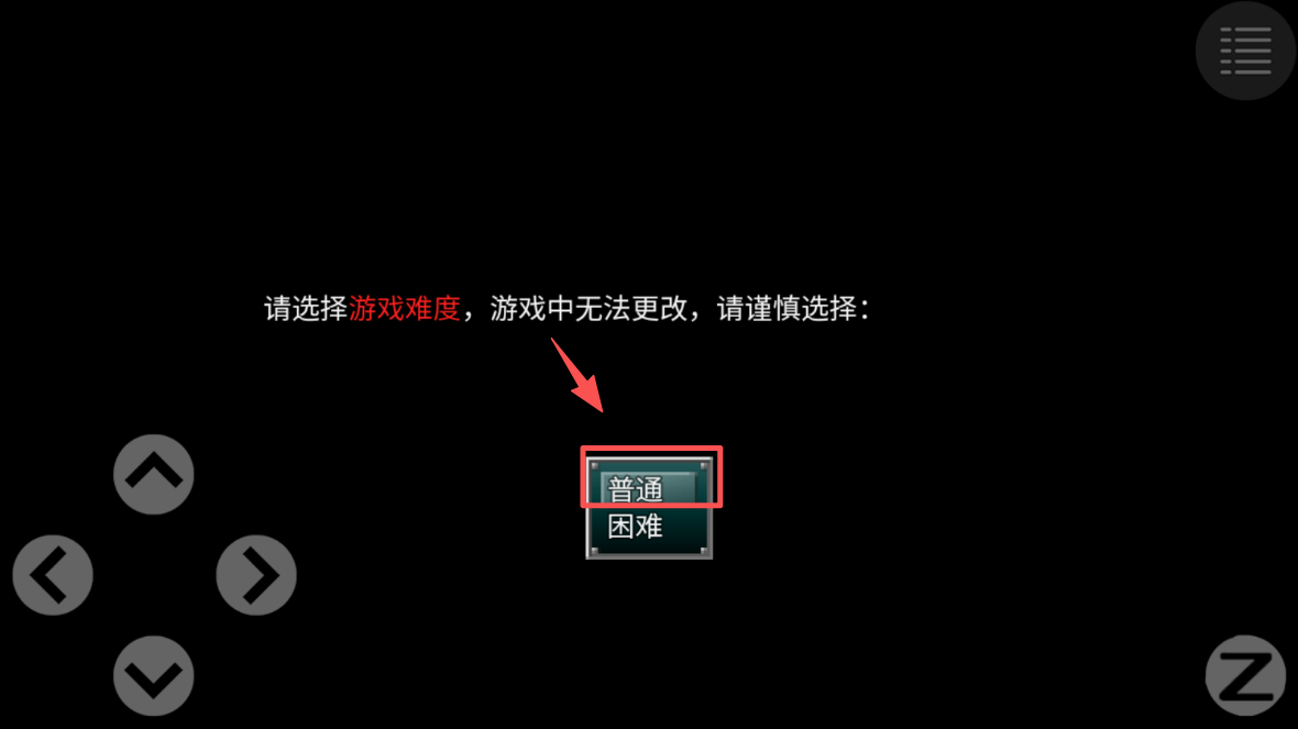 3、选择游戏难度,建议新手选择“普通”难度,以便更好地熟悉游戏操作和环境。