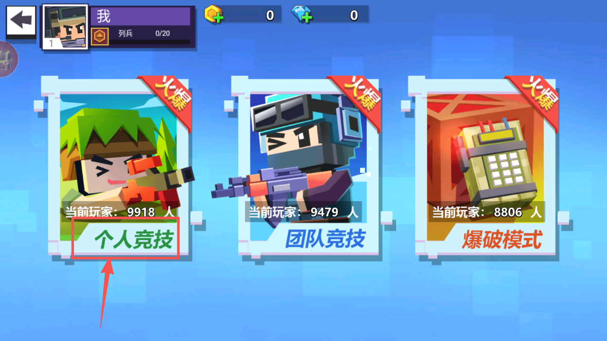 2、在模式选择界面,点击“个人竞技”选项,加入游戏,体验不同的竞技乐趣。