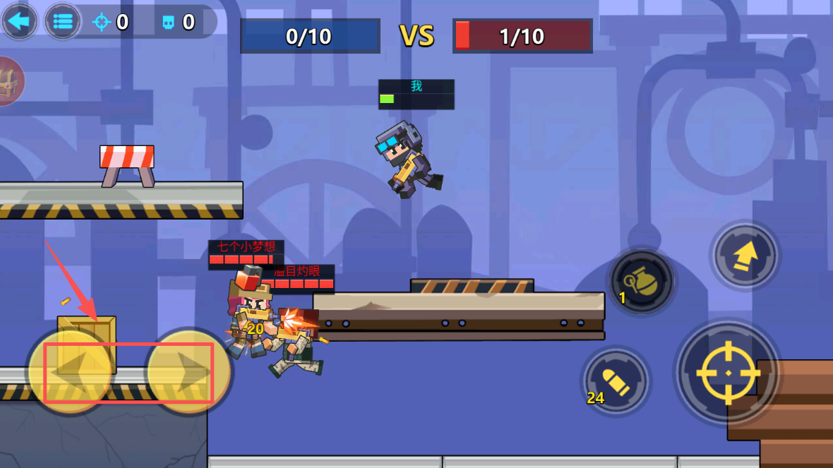 3、在游戏中,使用屏幕上的虚拟摇杆和射击按钮控制角色移动和射击,击败对手,赢得胜利。