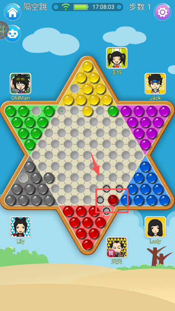 4、点击棋盘上的空位进行跳棋。在游戏中,点击棋盘上的空位来移动你的棋子,进行跳棋游戏。