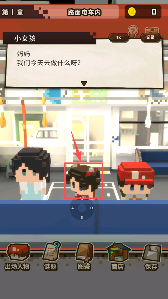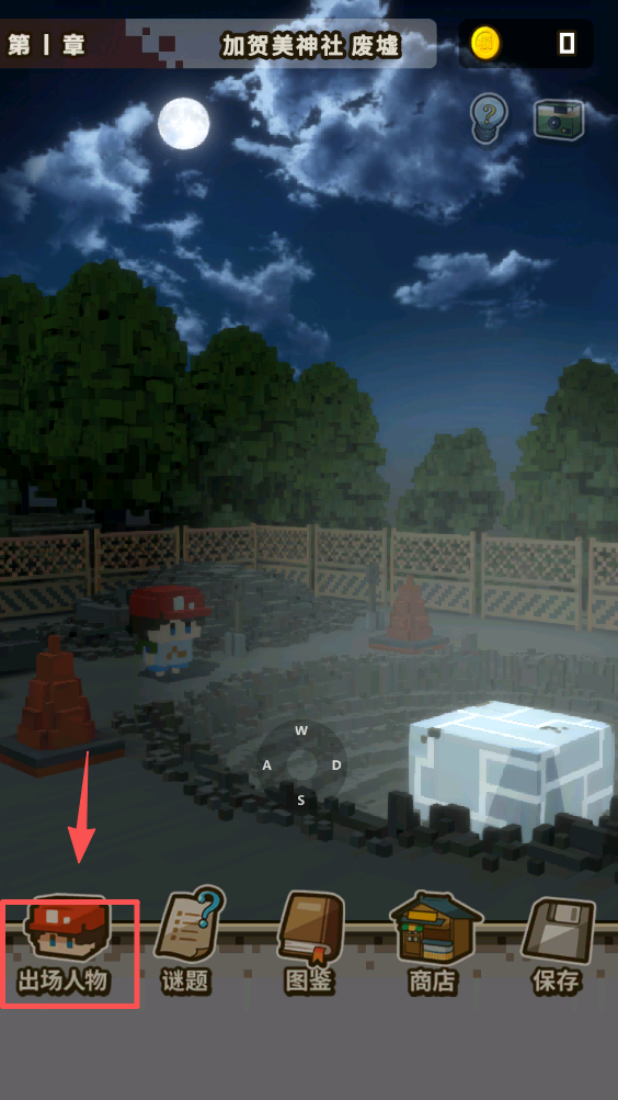2、点击“出场人物”按钮查看角色信息,使用WASD键探索周围环境。