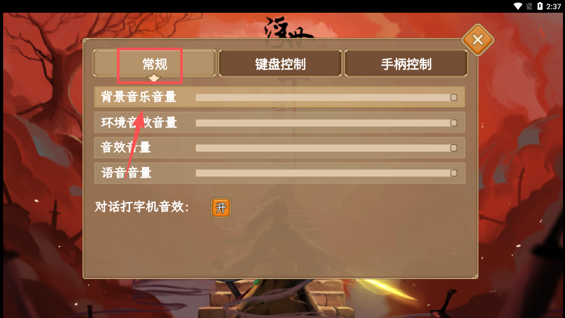 2、调整设置,点击“常规”选项卡,调节音量和音效。