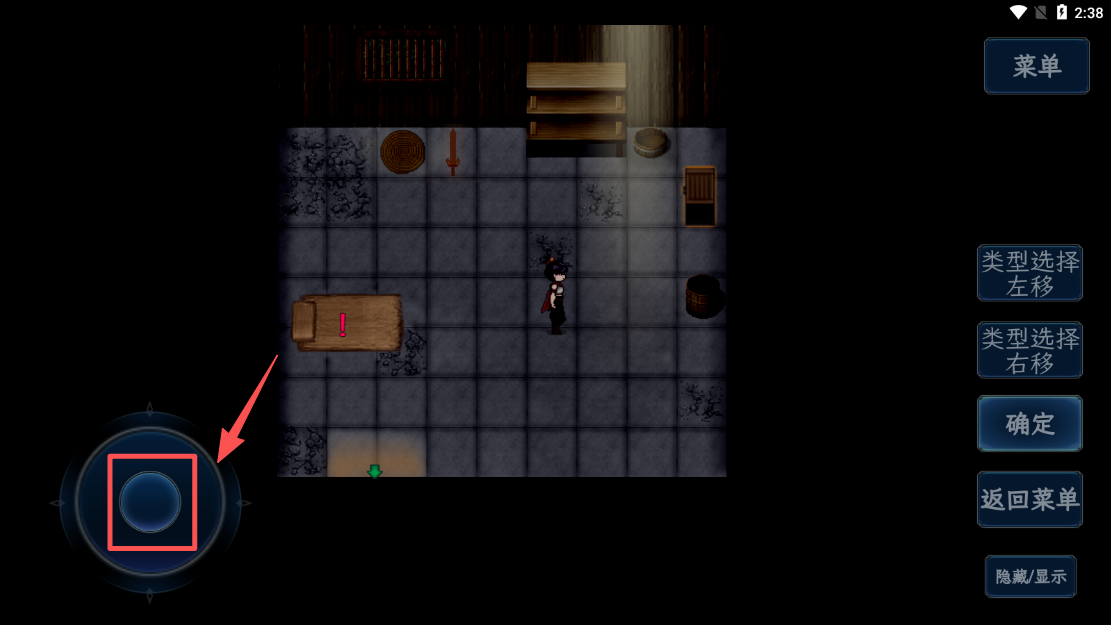 4、控制角色,使用虚拟摇杆,移动角色探索游戏。