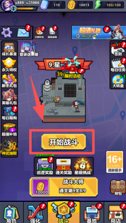 1、在主界面点击“开始战斗”按钮,进入战斗准备阶段。