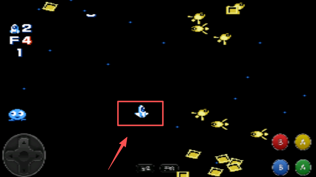 2、使用左下角的虚拟摇杆控制飞船移动,躲避敌人的子弹,同时进行反击。