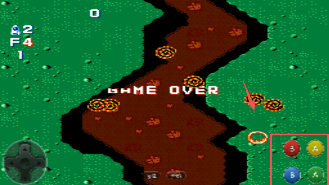 4、当游戏结束时,点击屏幕上的虚拟摇杆,准备重新开始游戏。