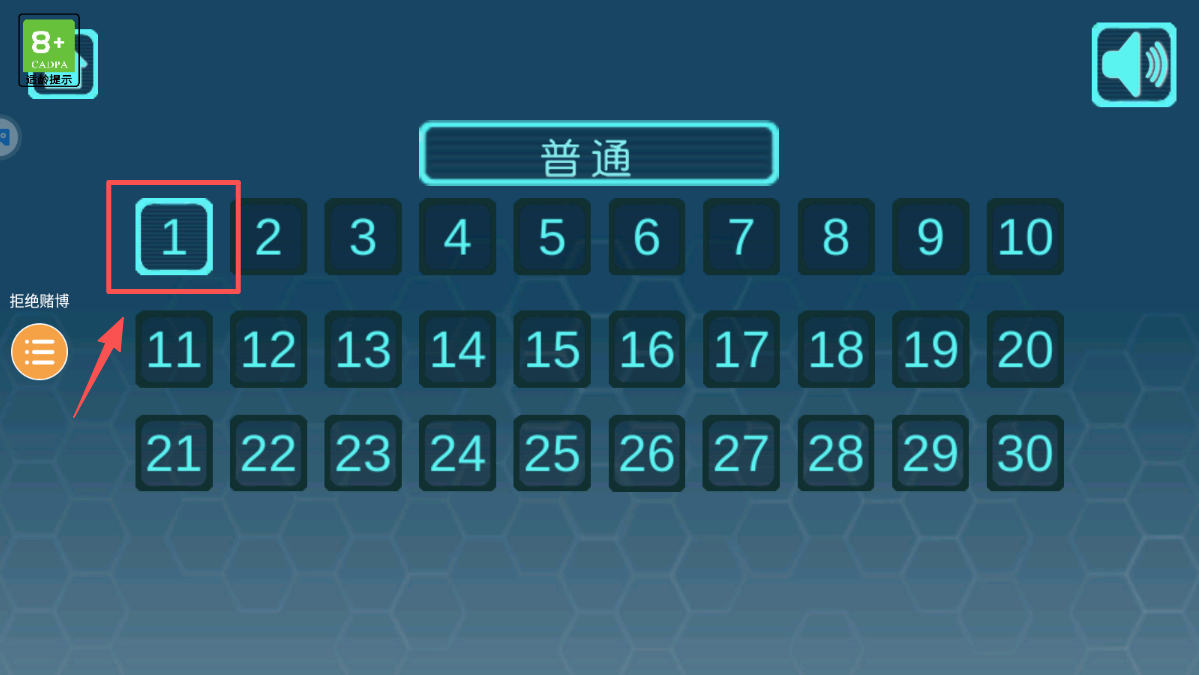 2、接着,选择关卡1,点击数字1以进入游戏,开始你的冒险之旅。