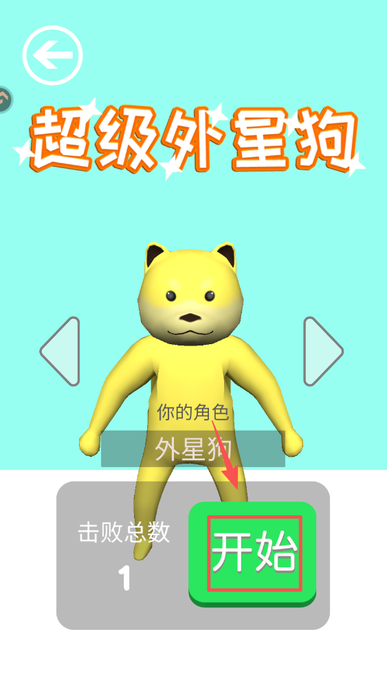 2、接着,选择你的角色“外星狗”,点击“开始”按钮确认选择并进入战斗。