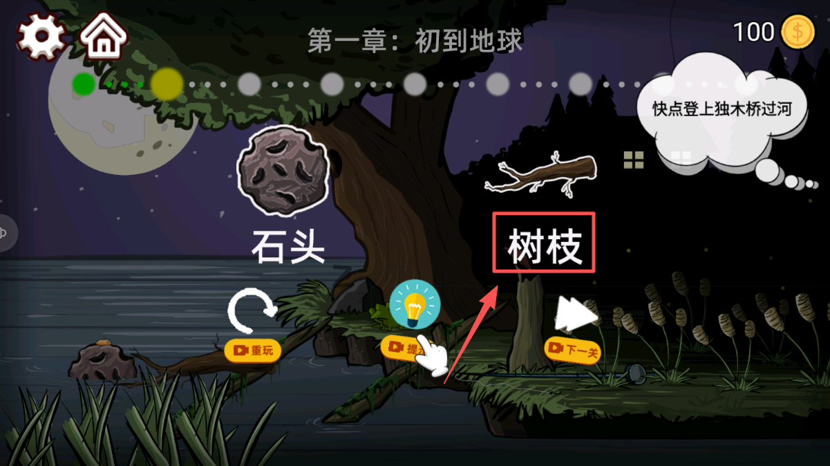 4、最后,利用选择的树枝快速过河,继续游戏,探索更多秘密。