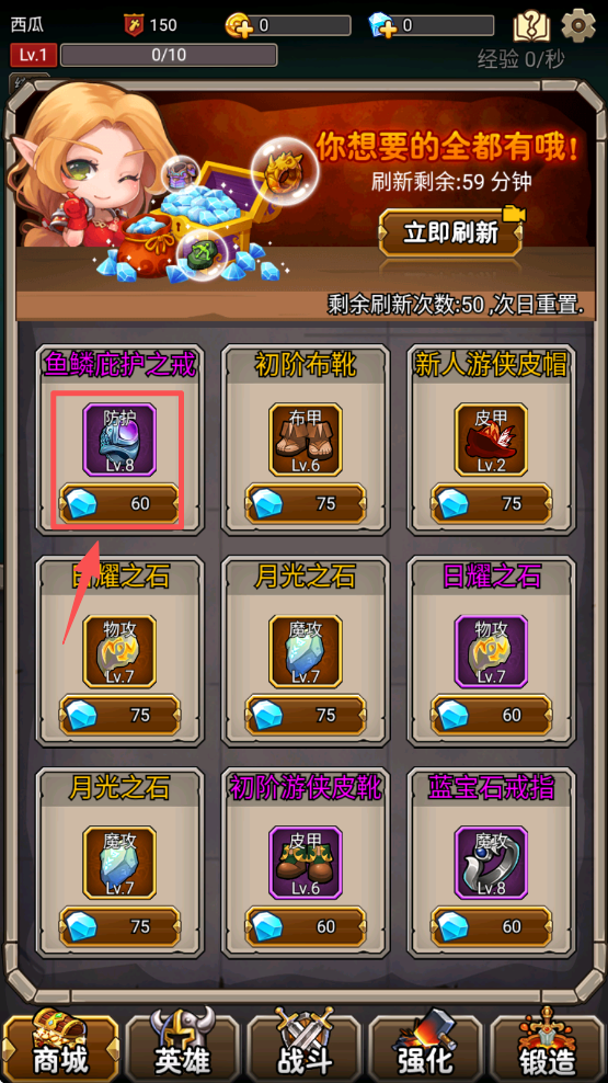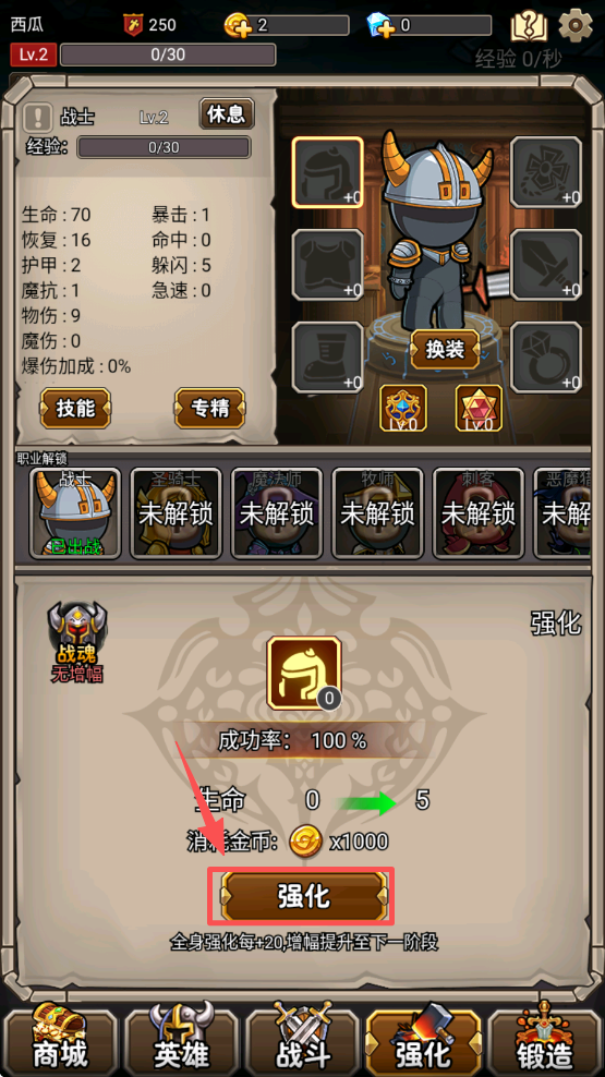 3、点击“强化”按钮,消耗金币提升英雄能力,增强战斗力。