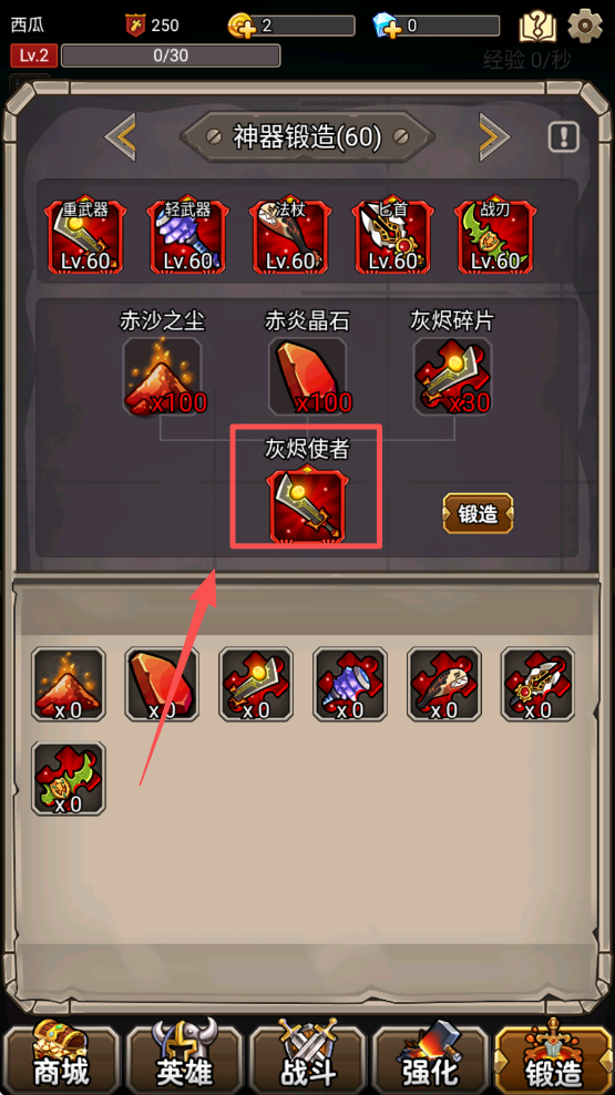 4、在锻造界面选择装备,点击“锻造”按钮,打造更强装备。
