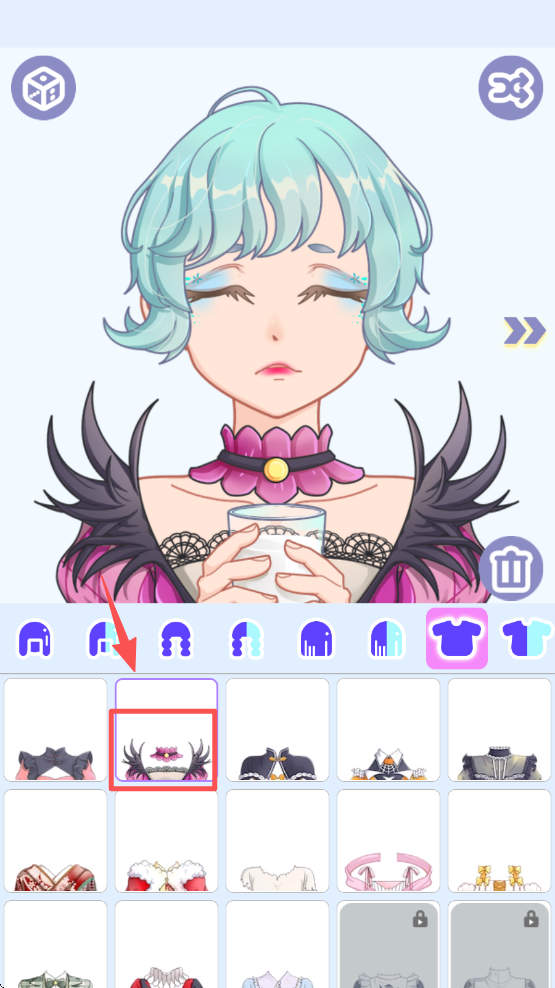 3、点击服装图标,选择一件独特的上衣,为你的角色增添个性魅力。