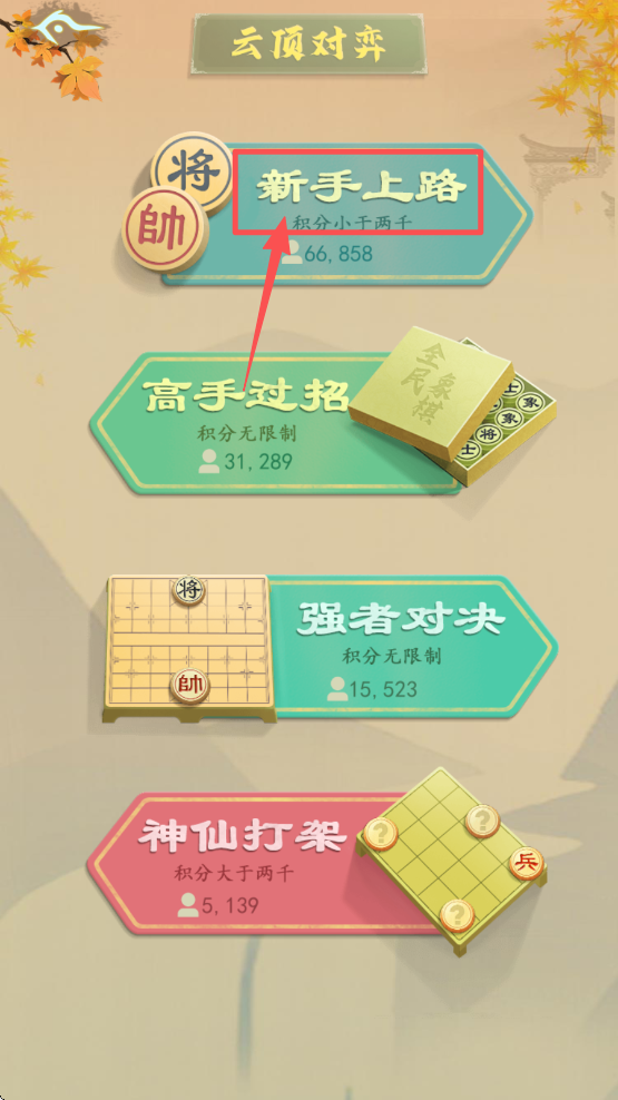 2、选择“新手上路”模式,适合初学者,逐步提升你的棋艺。