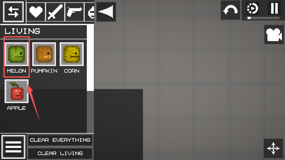 4、在物品栏中选择物品如“MELON”,进行互动或使用。