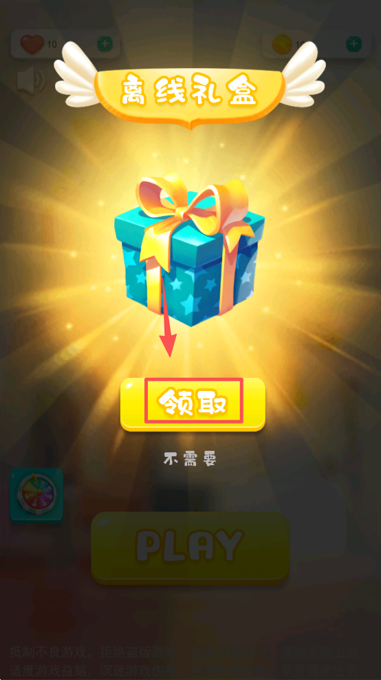 1、点击“领取”按钮,获取离线礼盒中的奖励,开始你的游戏之旅。
