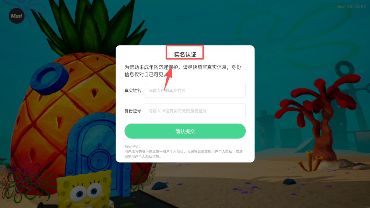 1、填写信息进行实名认证。输入真实姓名和身份证号,点击“确认提交”按钮。