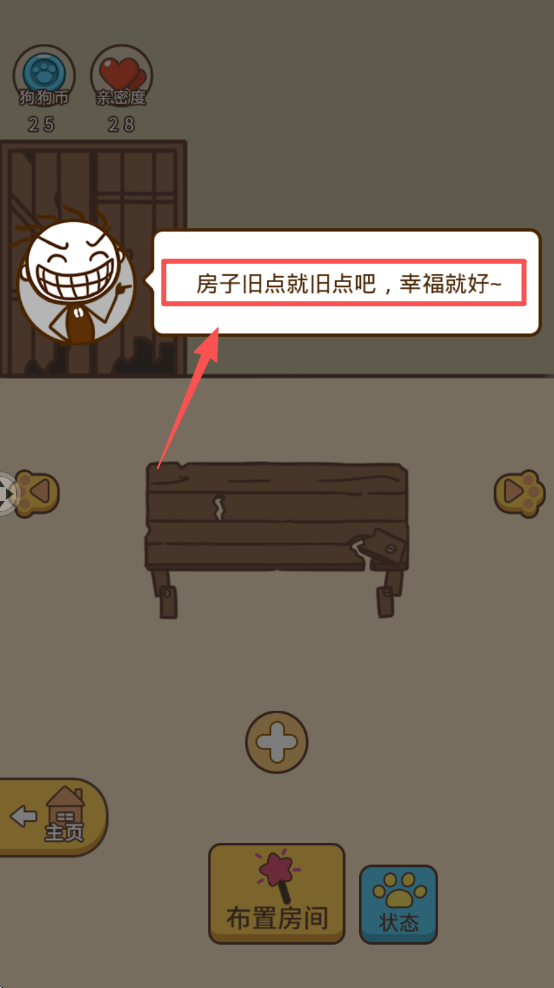3、点击屏幕下方的布置房间按钮,进入装扮界面。