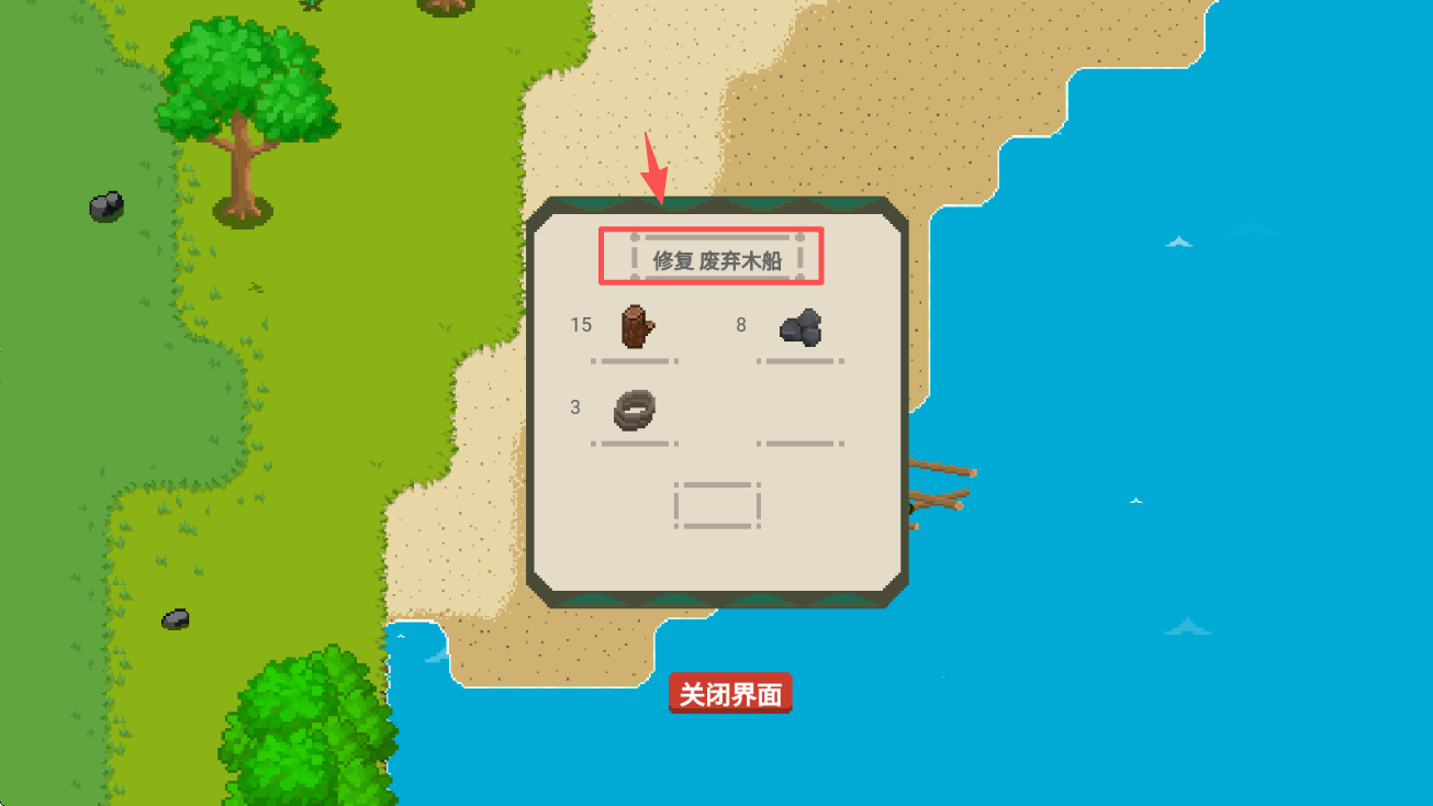3、在物品栏中,选择“修复废弃木船”任务,查看所需材料,开始修复工作。