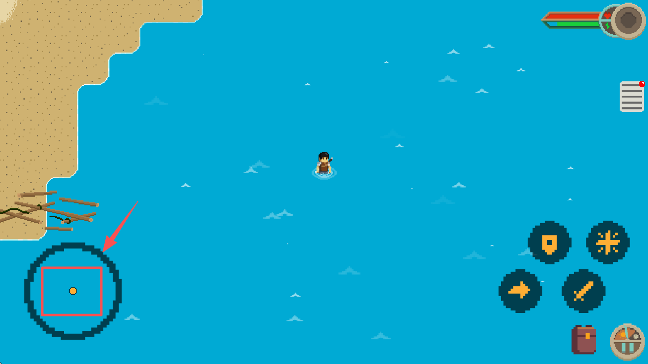 4、在海上游泳时,点击方向按钮,控制角色移动,探索周围的岛屿。