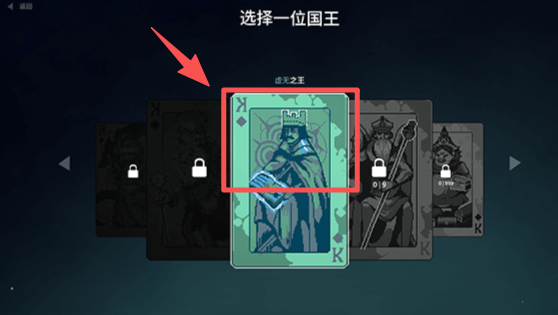 3、在国王选择界面,点击“忠义之王”卡牌,选择你的国王,开始游戏。