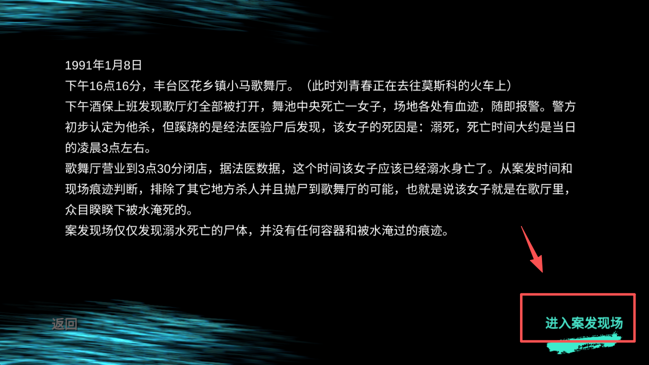 3、点击“进入案发现场”,开始你的侦探之旅。