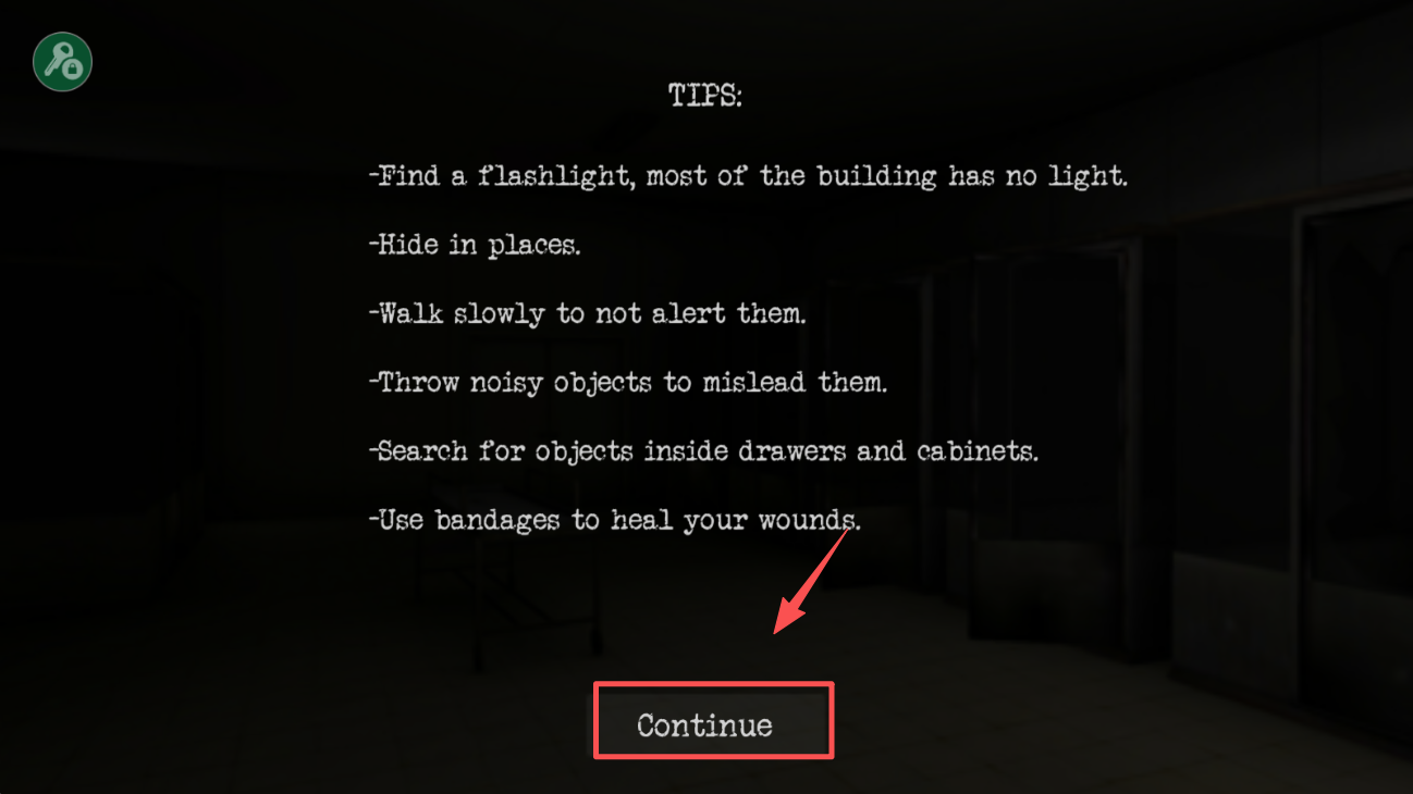3、阅读屏幕上的提示信息,了解游戏操作和生存技巧,然后点击“Continue”按钮继续游戏。