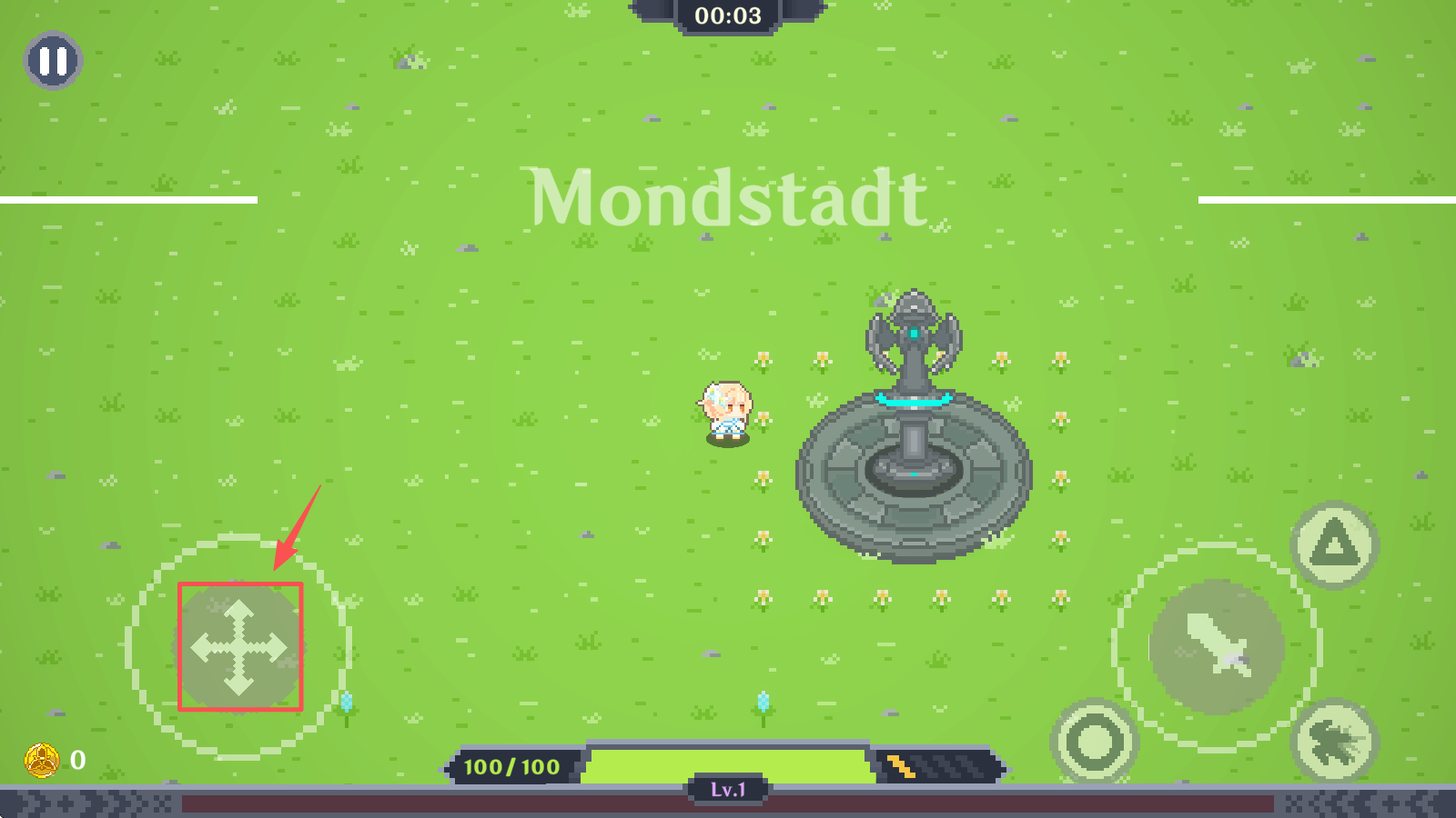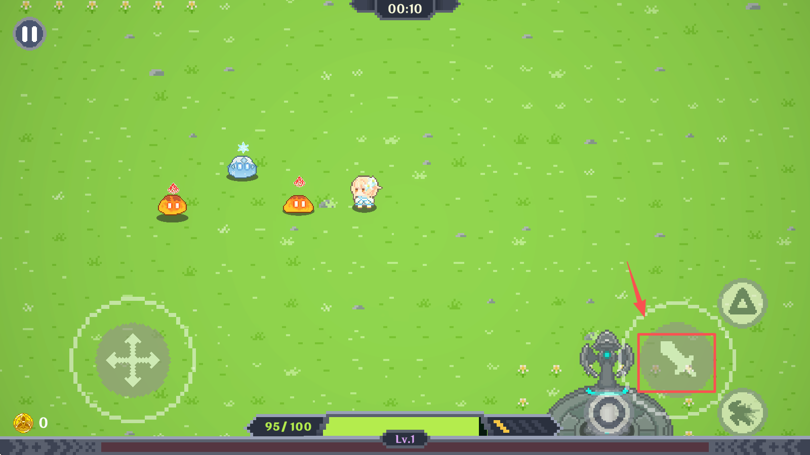 2、进入游戏后,使用虚拟摇杆控制角色移动,收集道具和金币。