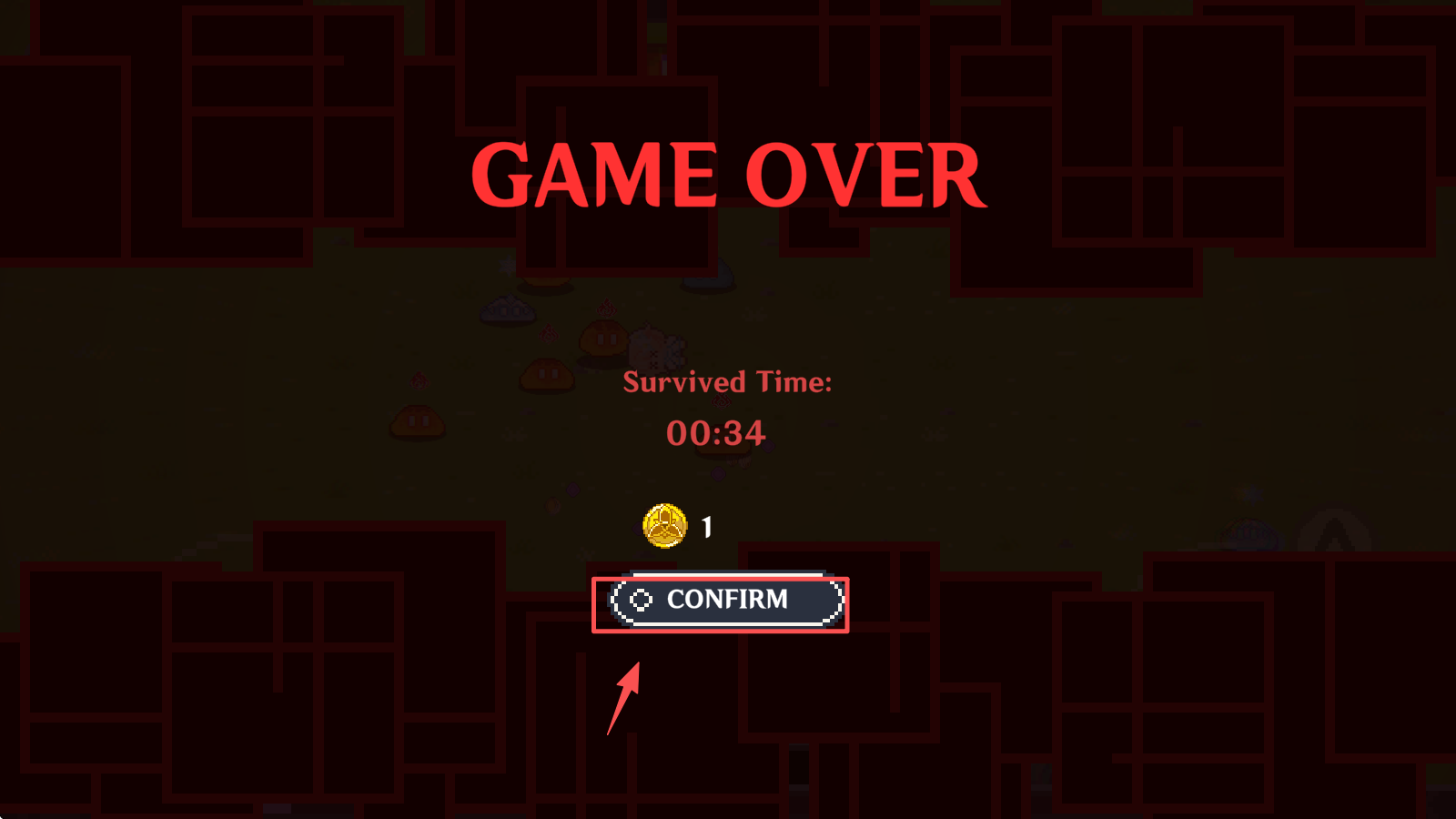 4、游戏结束后,点击“CONFIRM”按钮确认并重新开始游戏。