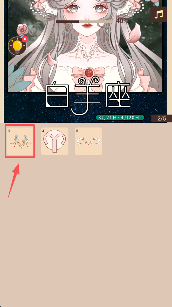 1、首先,选择一个星座图标开始装扮,例如点击白羊座图标。